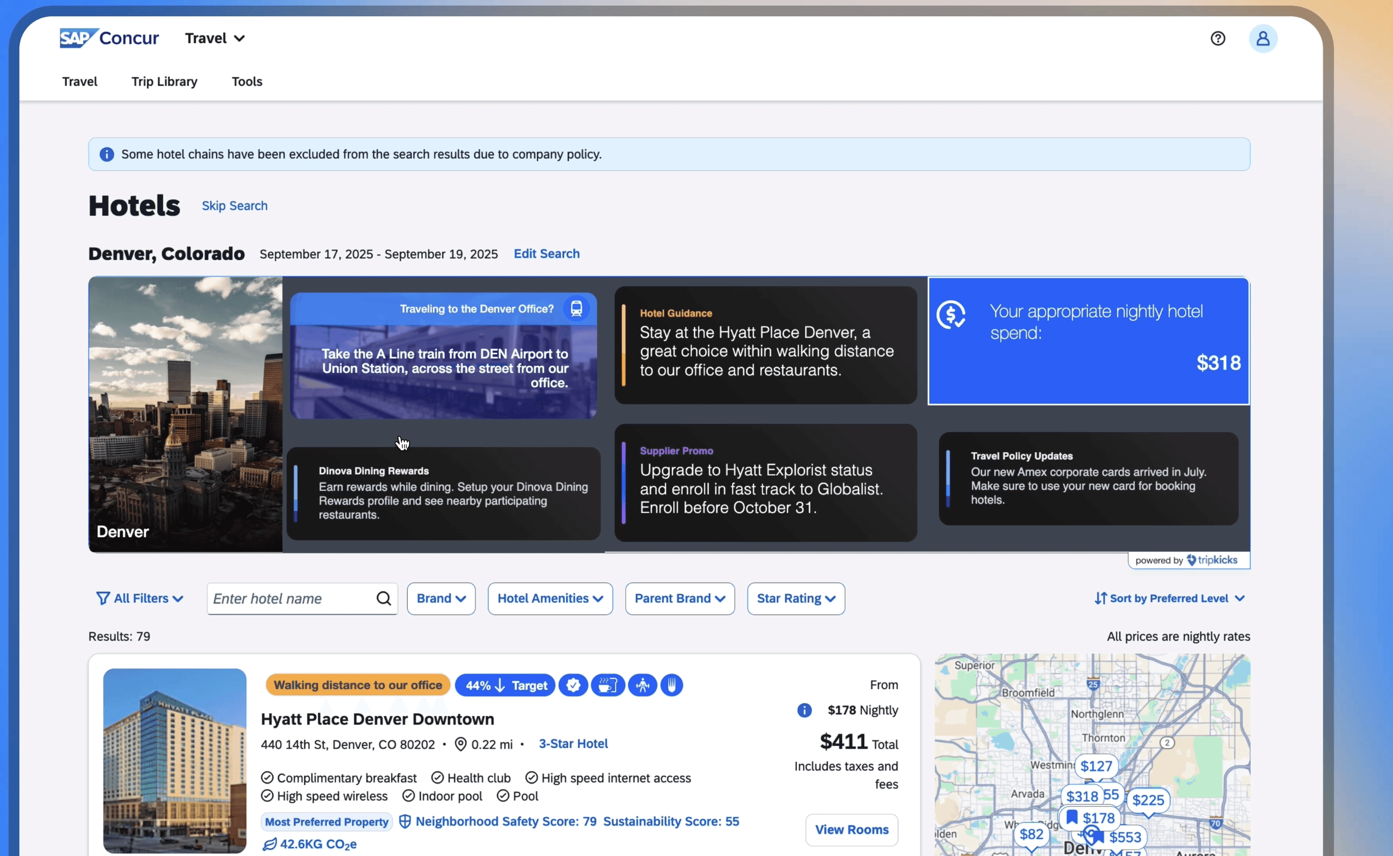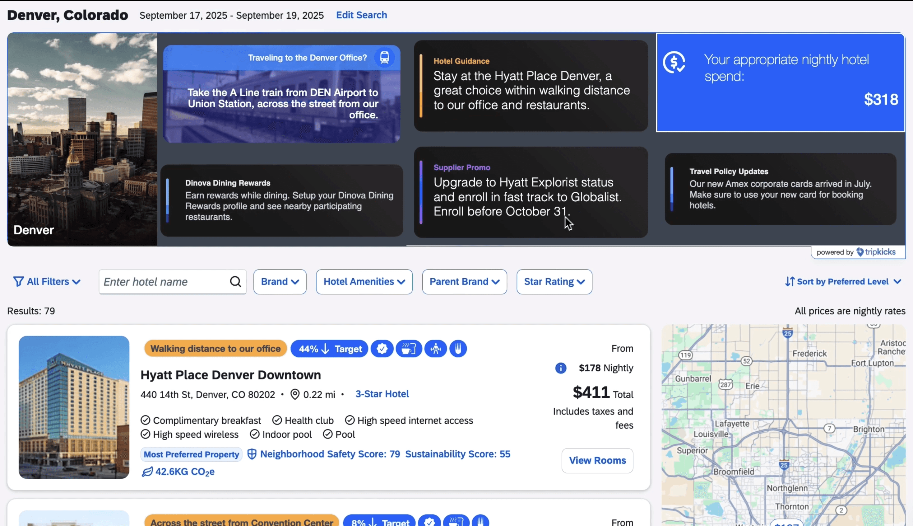Tripkicks Insights Banners transform every search into a strategic opportunity. By combining individual booking history, company-wide norms, and real-time partner data, we deliver personalized guidance that actually changes behavior.