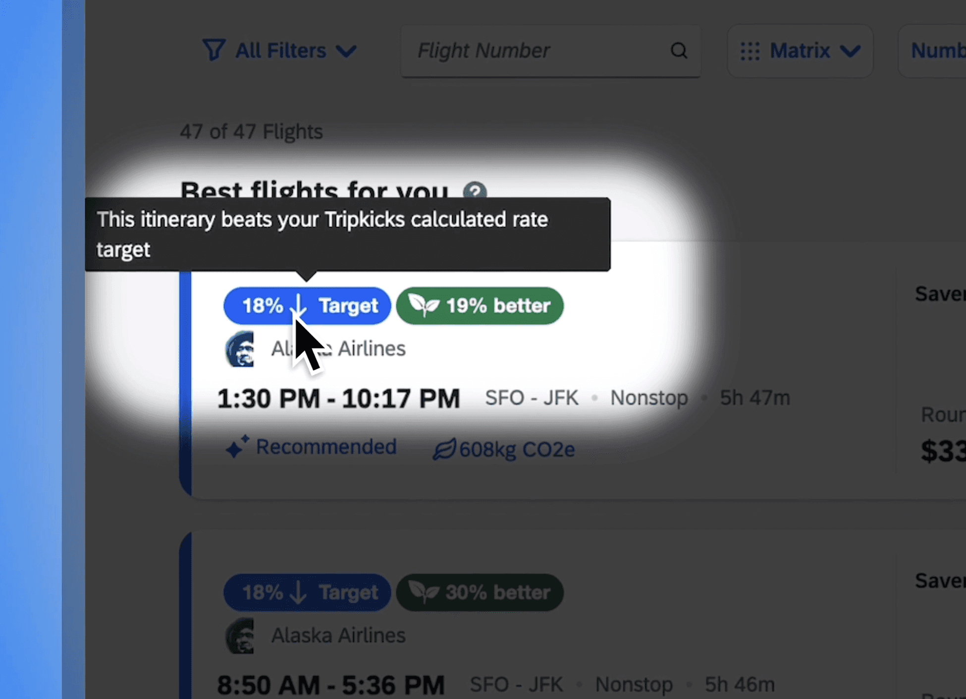 Tripkicks Supplier Attributes highlight what matters about your preferred hotels and airlines — amenities, discounts, safety, and sustainability — right where travelers are choosing.
