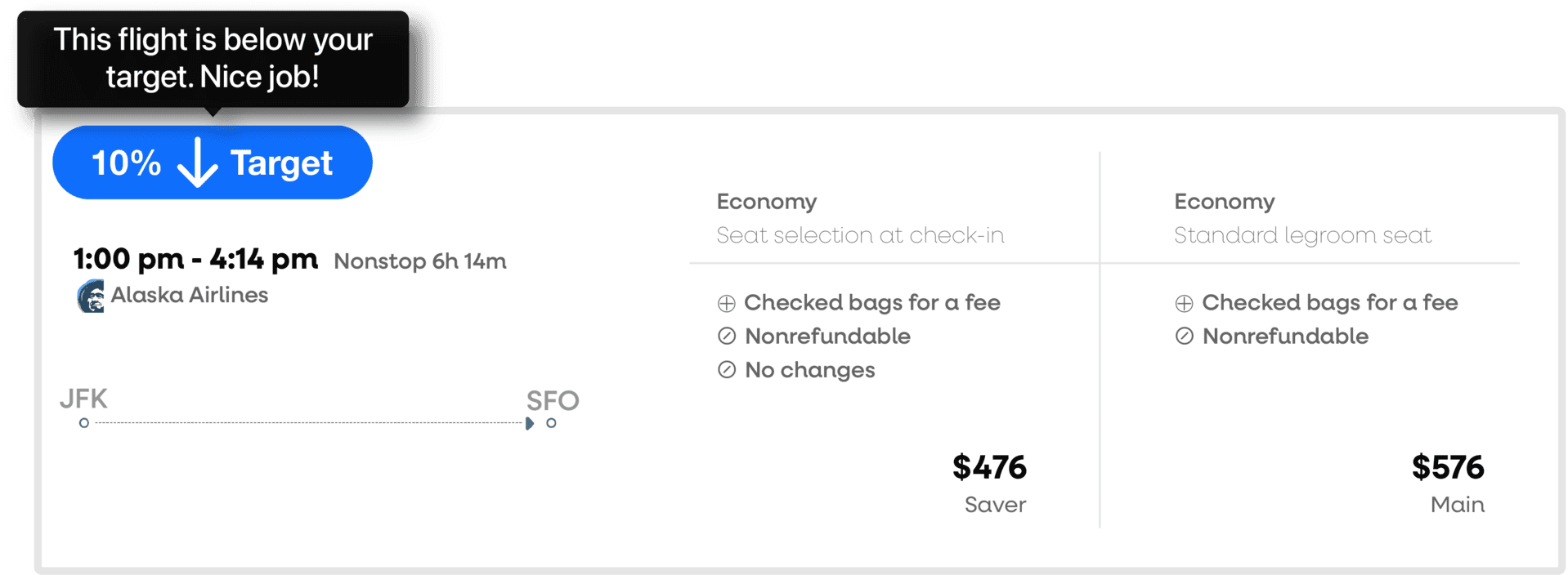 When a traveler searches for a flight, they see real-time pricing intelligence:
